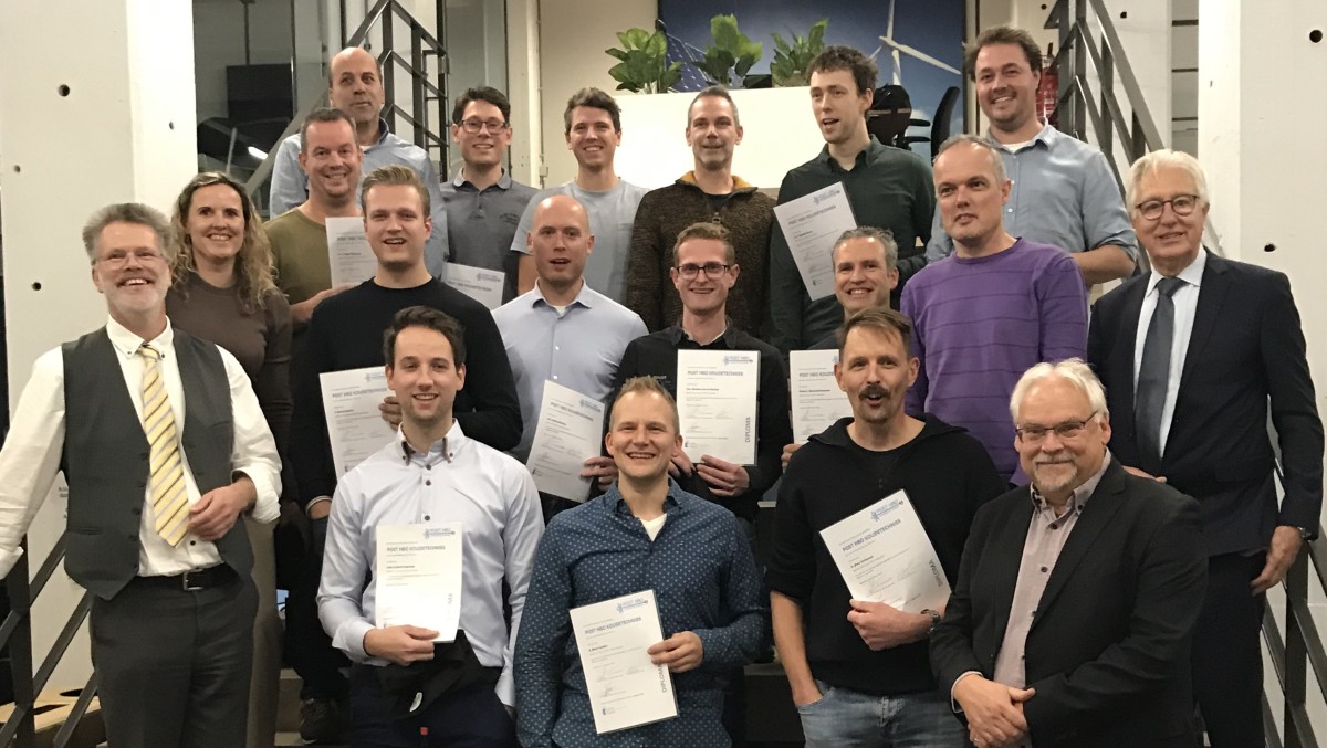 Het bezoekadres blijft ongewijzigd: Korenmolenlaan 4 3447 GG Woerden | | | | | | Weer 21 studenten gediplomeerd aan de Post-HBO Koudetechniek Op 2 november 2023 vond aan de Hogeschool Arnhem-Nijmegen de diploma-uitreiking plaats van de Post-HBO Koudetechniek, cohort 2022-2023. In deze lichting zijn 20 nieuwe studenten begonnen. Bovendien was er een student die zijn studie in het vorige cohort om persoonlijke redenen moest afbreken. Die werd nu in de gelegenheid gesteld om zijn studie af te ronden.